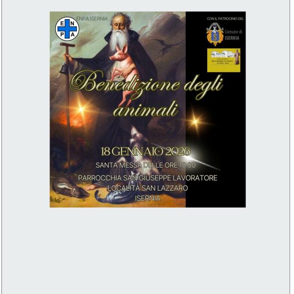 Domenica 18 gennaio 2026 ore 10.00 Parrocchia San Giuseppe Lavoratore San Lazzaro – Isernia – S.Messa – Al termine benedizione degli animali nella piazza antistante… Leggi