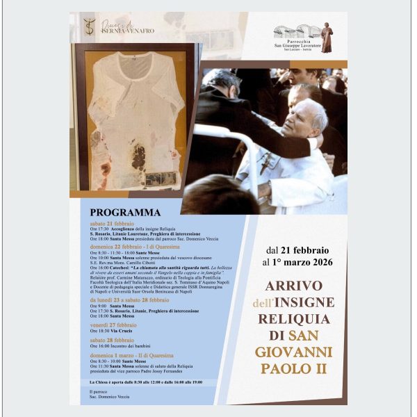Venerdì 6 febbraio 2026 ore 21.30, Azione Cattolica – “ADORAZIONE EUCARISTICA NOTTURNA” – – Altre date: – Venerdì 6 marzo 2026 ore 21.30, Comunità Sant’Egidio,… Leggi