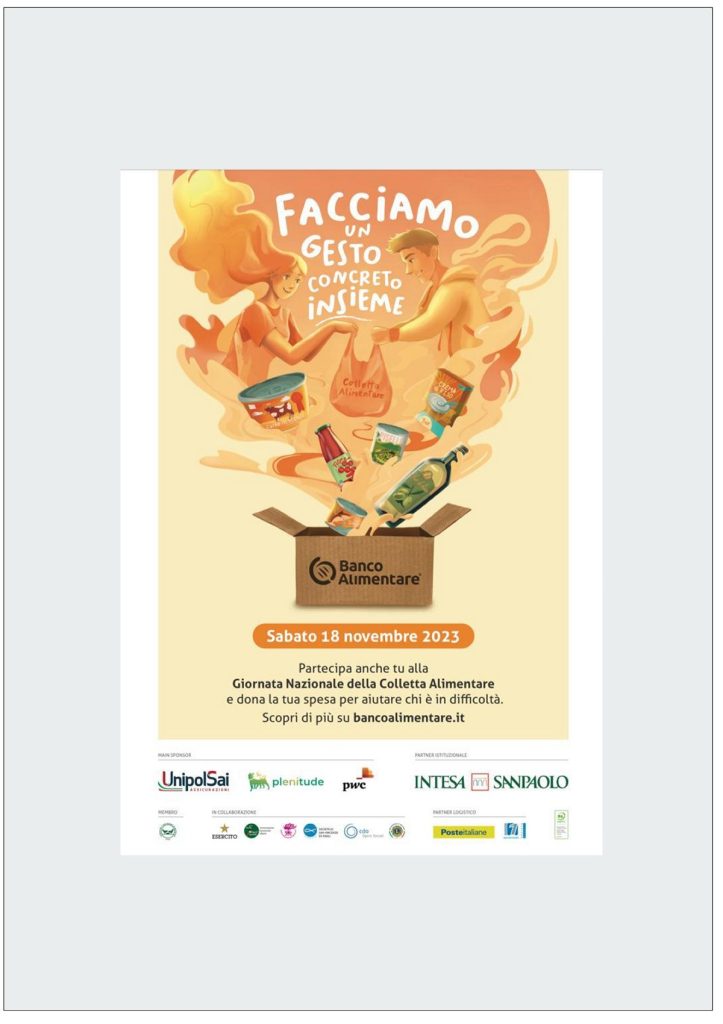 La Giornata Nazionale della Colletta Alimentare, ormai giunta alla 27^ edizione, è diventata un importantissimo momento di coinvolgimento e sensibilizzazione della società civile al problema della povertà. Durante l’intera giornata di sabato 18 novembre, presso una fittissima rete di supermercati aderenti su tutto il territorio nazionale, ciascuno può donare parte della propria spesa per rispondere al bisogno di quanti vivono nella povertà.