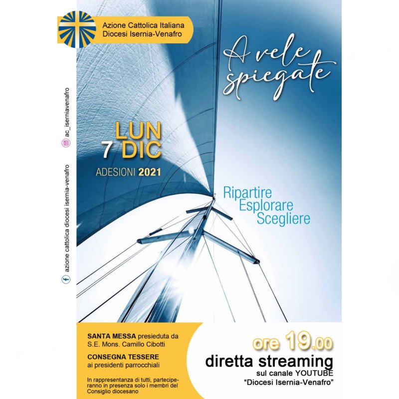 In presenza ci saranno solo i membri del Consiglio diocesano, a nome di tutti gli associati, e non, che però potranno seguire la diretta sulla pagina Youtube della Diocesi Isernia-Venafro.