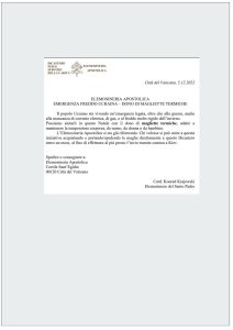 Fonte: Vatican News In un comunicato, il Dicastero per il Servizio della Carità lancia un’iniziativa per aiutare la popolazione ucraina provata dalla guerra e dal freddo. Si tratta di acquistare, entro un mese, gli indumenti ed eventualmente portarli o spedirli in Vaticano L’obiettivo della raccolta di magliette termiche è di effettuare al più presto l’invio […]