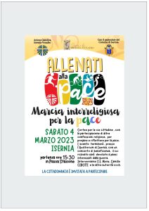 Sabato 4 marzo 2023 ore 15.30 – Partenza in Piazza Stazione di Isernia Marcia interreligiosa per la Pace 2023 – In occasione del mese della Pace, l’Azione Cattolica diocesana organizza questo evento aperto a tutta la cittadinanza, a cui parteciperanno anche altre confessioni religiose, per dire stop alla guerra. Al termine della marcia, ci sarà […]
