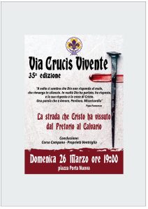 Domenica 26 marzo 2023 – ore 19.00 – Piazza Porta Nuova – 35^ edizione della Via Crucis Vivente Conclusione: Corso Campano – proprietà Ventriglia –
