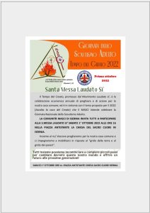 sabato 22 ottobre 2022, ore 20:45 – La Giornata Missionaria Mondiale 2022 trova il suo principale riferimento tematico nel messaggio di Papa Francesco, pubblicato il 6 gennaio scorso, che porta il titolo «Di me sarete testimoni» (At 1,8). Il Papa ci dice: «Come Cristo è il primo inviato, cioè missionario del Padre (cfr Gv 20,21) e, in quanto tale, […]