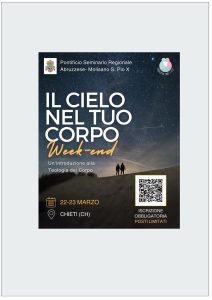 Sabato 22 marzo dalle ore 9.30 alle ore 19.00 e domenica 23 marzo dalle ore 9.30 alle ore 15.00, presso il Seminario di Chieti, Via Nicoletto Vernia, 1, Chieti (CH) – Due giorni per introdursi nell’affascinante annuncio della Teologia del Corpo di San Giovanni Paolo II. Aperto a tutti dai 20 anni in su (single, […]