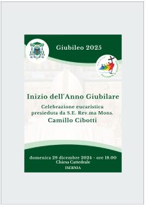 Percorso Giubilare per i Cori della Diocesi – Verso una celebrazione “corale” per l’apertura del Giubileo 2025 – Il 29 dicembre 2024, alle ore 18.00, il nostro Vescovo ha presieduto, presso la Cattedrale di Isernia, la celebrazione che segna l’inizio del percorso giubilare. In quest’occasione, è stato avviato anche un percorso dedicato ai cori della […]