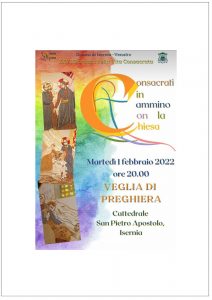 Martedì 1° febbraio 2022 – ore 20.00 – XXVI Giornata della Vita Consacrata – Veglia di Preghiera Cattedrale San Pietro Apostolo di Isernia
