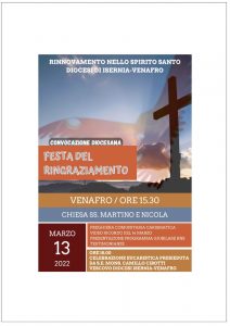 domenica 23 gennaio, alle 16.30, presso il salone parrocchiale Sacro Cuore di Isernia. – si è tenuto il Convegno sulla Pace organizzato dall’Azione cattolica sono intervenuti diversi ospiti. E’ stato presente anche S.E. Mons. Camillo Cibotti. la locandina Dal sito web dell’AC [https://azionecattolica.it/ricuciamo-la-pace-liniziativa-del-mese-della-pace-2022/] “Ricuciamo la pace. L’iniziativa del Mese della Pace 2022 Essere costruttori di […]