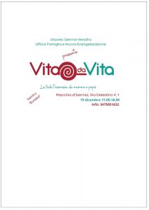 domenica 19 dicembre 2021, dalle 17,00 alle 18,00- Con grande gioia vi invito presso il Centro “Eureka” a Macchia d’Isernia, Via Celestino V, 1 alla presentazione del progetto-esperienza VITA DA VITA. “I coniugi danno forma con vari gesti quotidiani ad uno spazio teologale in cui si può sperimentare la presenza del Signore risorto” (Papa […]