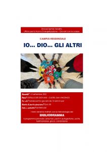 1-3 settembre 2021 – Il ritiro per adolescenti e giovani che si terrà dall’1 al 3 settembre nell’ostello dei giovani a Castel San Vincenzo, dal titolo: “IO… DIO… GLI ALTRI” è ispirato alle parole di Gesù che dice: “Amerai il Signore tuo Dio con tutto il tuo cuore, con tutta la tua anima e con tutta […]