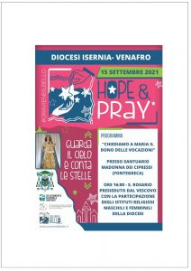 lunedì 30 agosto 2021 – L’Arcidiocesi di Chiesti-Vasto invita ad una giornata dedicata alle Vocazioni – Si svolgerà nei locali della Chiesa di San Marco a Vasto il Convegno Regionale per le Vocazioni dal titolo “Giornata del SI’ a DIO” organizzato dall’Arcidiocesi di Chieti-Vasto. La giornata, che è stata pensata per i ragazzi/e dai 16 […]
