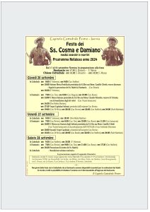 Dal 17 al 27 settembre 2024 – Programma dei festeggiamenti dei Santi Medici. Sarà celebrato anche il rito dell’Unzione degli Ammalati. don Francesco Bovino Nei prossimi giorni la città di Isernia e l’intera diocesi saranno in festa per celebrare i Santi Martiri Cosma e Damiano, medici anargiri, venerati nello splendido tempio che la città pentra […]