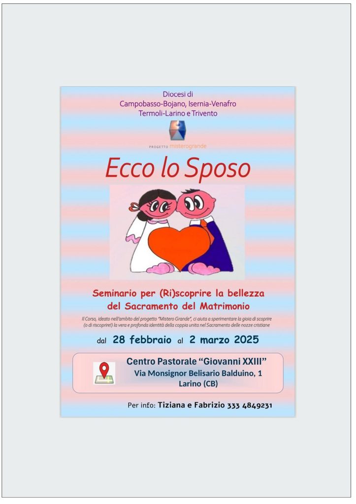 Dal 28 febbraio al 2 marzo 2025 – Centro Pastorale “Giovanni XXIII” Via Monsignor Belisario Balduino, 1 Larino (CB) –