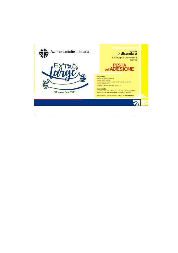 Gioia, armonia, fede, condivisione ed entusiasmo caratterizzeranno questa giornata e proprio TU non puoi mancare… l’AC è una casa per tutti!