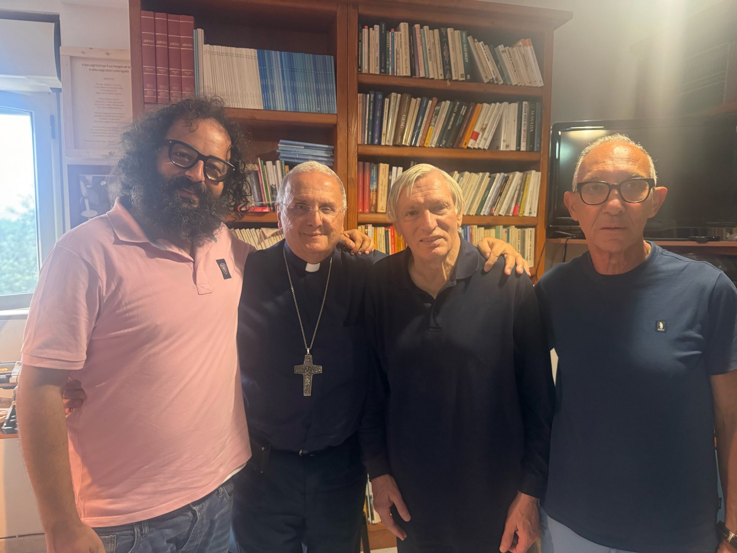 Foto n. 2: Paolo Orabona( Direttore della Caritas Diocesana di Isernia-Venafro), S.E. mons. Cibotti (Vescovo della Diocesi di Isernia-Venafro), don Luigi Ciotti( fondatore del gruppo Abele e dell’associazione Libera contro le mafie), Emanuele(volontario della Caritas Diocesana di Isernia-Venafro).