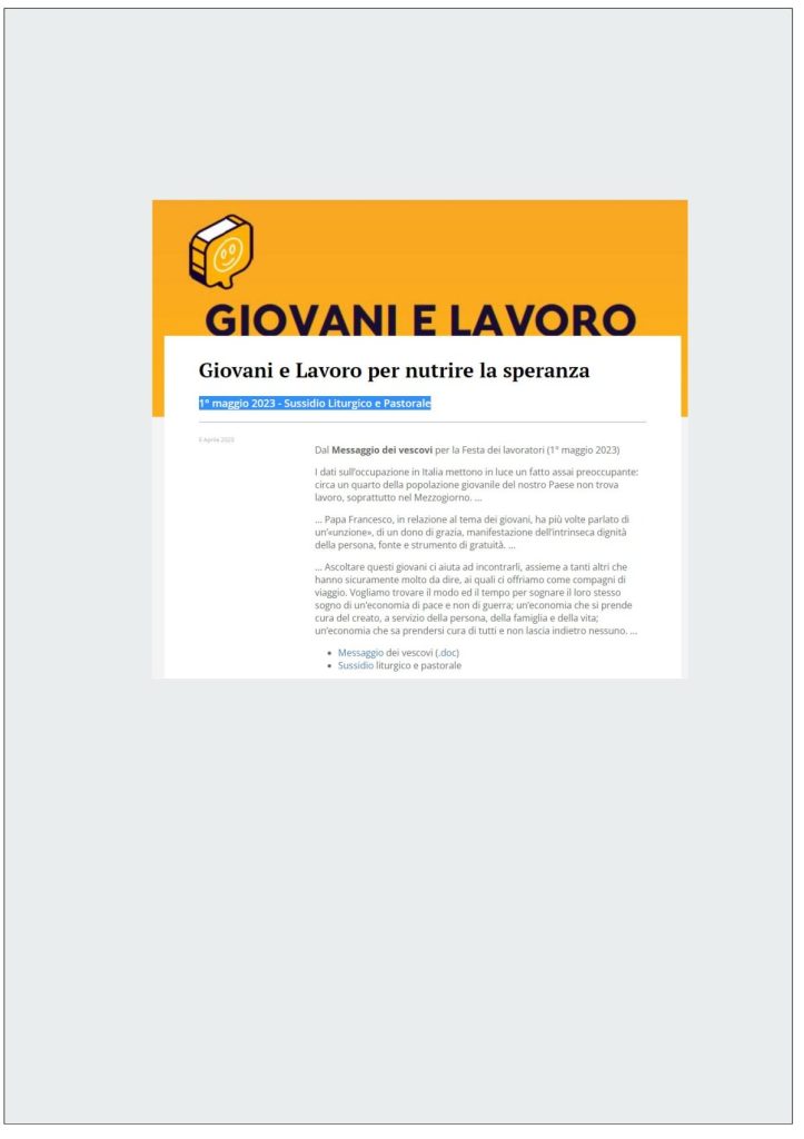 1° maggio 2023 – Sussidio Liturgico e Pastorale –