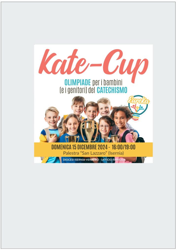 “Il Kate-cup è una festa gioiosa nella fede e un’occasione di incontro tra bambini, ragazzi, genitori, parroci, educatori e animatori parrocchiali. Ad organizzarlo è il Centro “Eureka” in collaborazione con l’Ufficio di Pastorale Familiare e Nuova Evangelizzazione.
