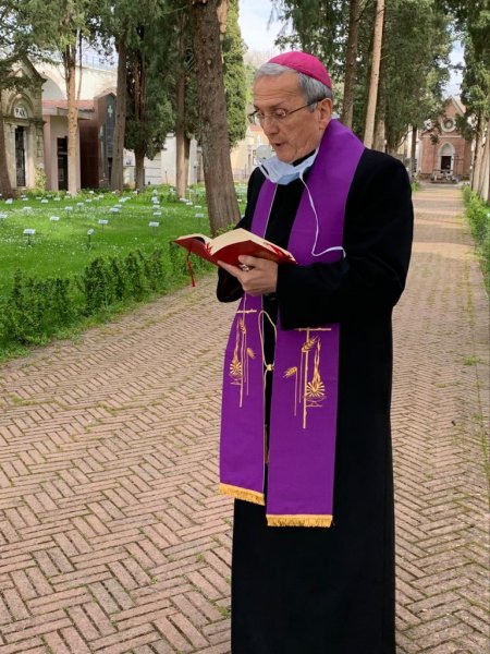 Mons. Camillo Cibotti si è recato da solo nel cimitero del capoluogo pentro per benedire tutti i defunti