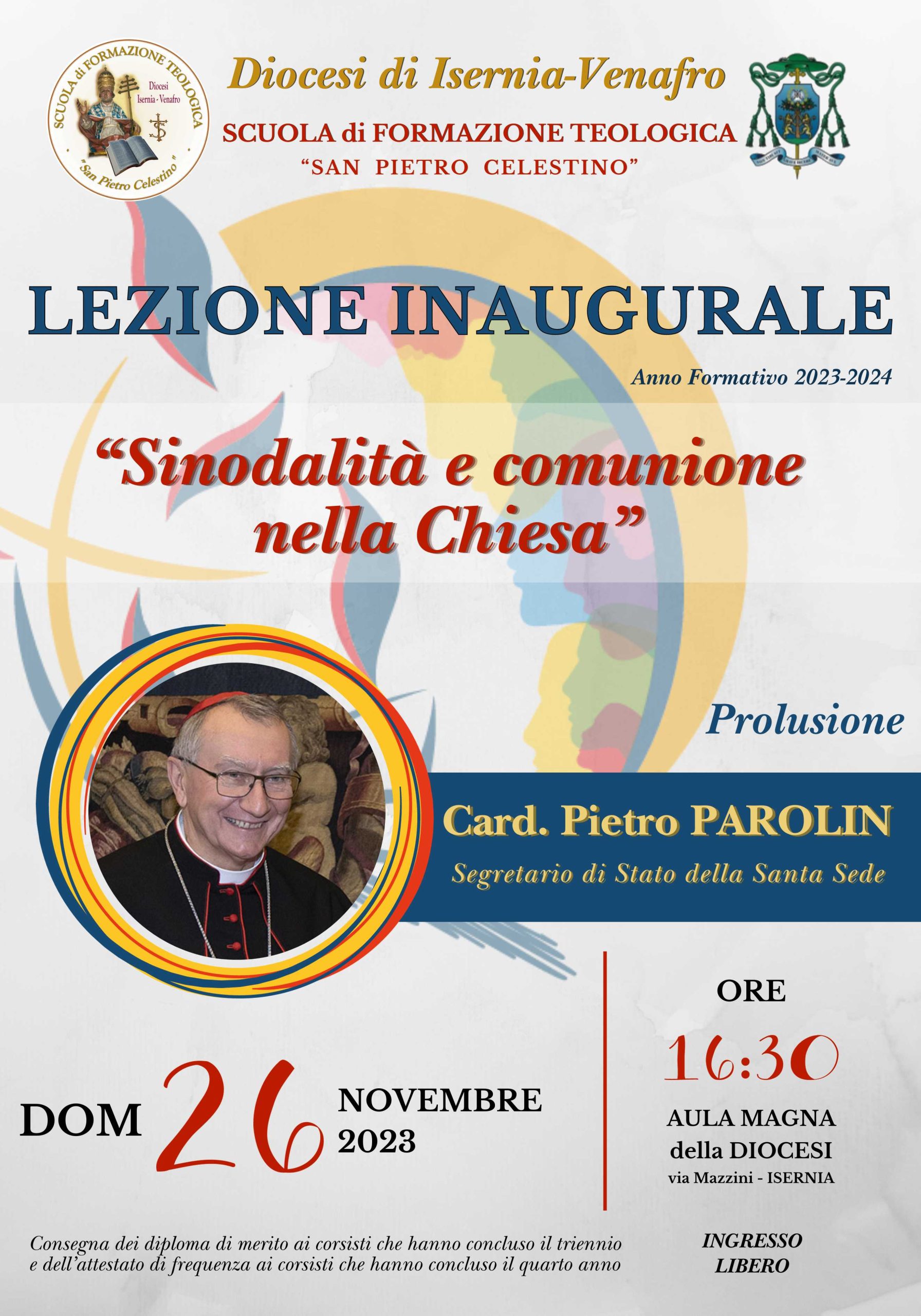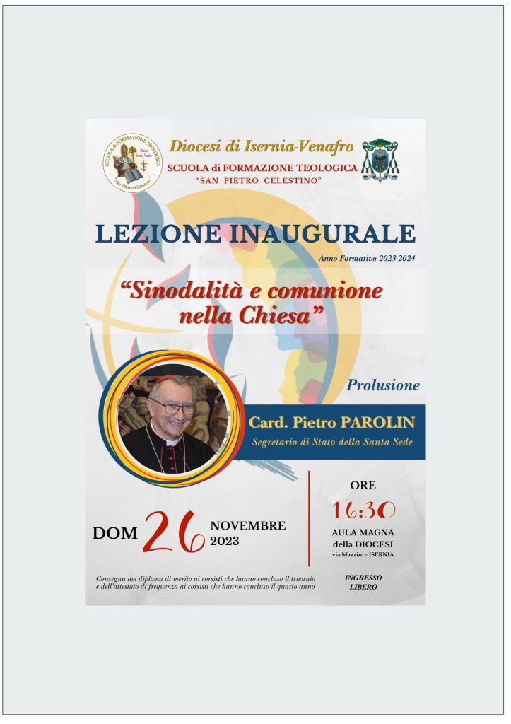 Domenica 26 Novembre 2023 – alle ore 16.30 presso l’Aula Magna della Diocesi in via Mazzini ad Isernia la Lezione Inaugurale del XVII Anno Formativo della Scuola Diocesana di Formazione Teologica.