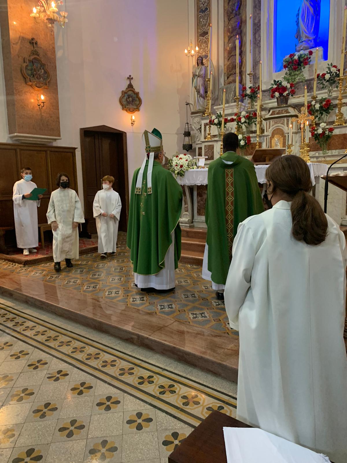 Ringraziamo il vescovo Cibotti per aver donato alla nostra comunità un nuovo pastore, con la promessa di aiutarlo in questo cammino di crescita cristiana della nostra comunità. Il Vescovo ha salutato i chierichetti prima della Santa Messa e con la sua presenza ha segnato l’ingresso ufficiale di don Jean Claude nella nostra parrocchia. Non è stato possibile a causa delle norme anti Covid organizzare un momento conviviale ma l’emozione legata alla presenza di sua eccellenza ha sopperito a questa mancanza.