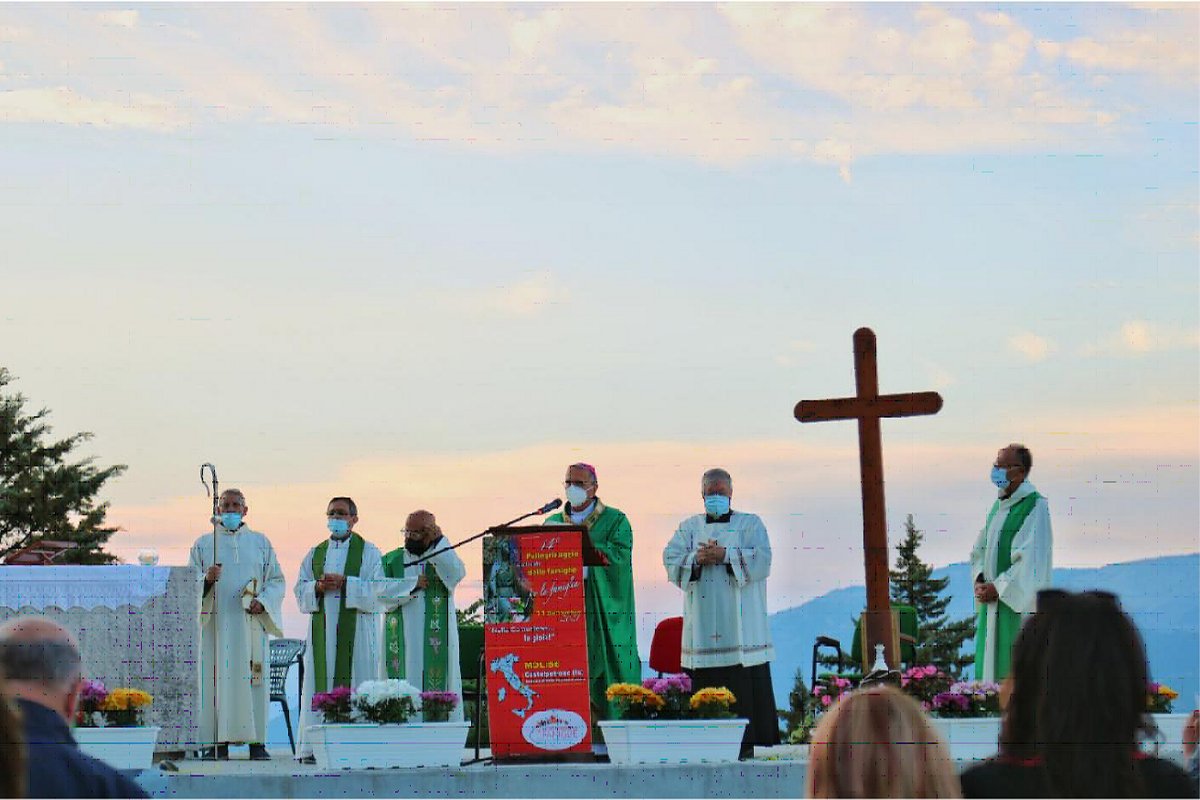 “La famiglia è lo specchio in cui Dio si guarda”, le parole di Mons. Cibotti nella omelia della Celebrazione Eucaristica, da lui presieduta, risuonano a chiusura della giornata di sabato 11 settembre u.s. che ha visto riuniti numerosi nuclei familiari (genitori, figli, nonni) della Regione Molise, nella cornice accogliente della Basilica Minore della Madonna Addolorata di Castelpetroso.