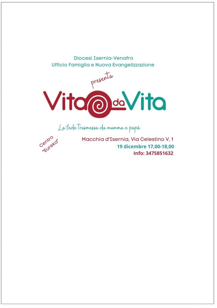 Con grande gioia vi invito presso il Centro “Eureka” a Macchia d’Isernia, Via Celestino V, 1 alla presentazione del progetto-esperienza VITA DA VITA.