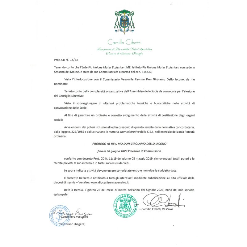 Proroga Commissario Vescovile