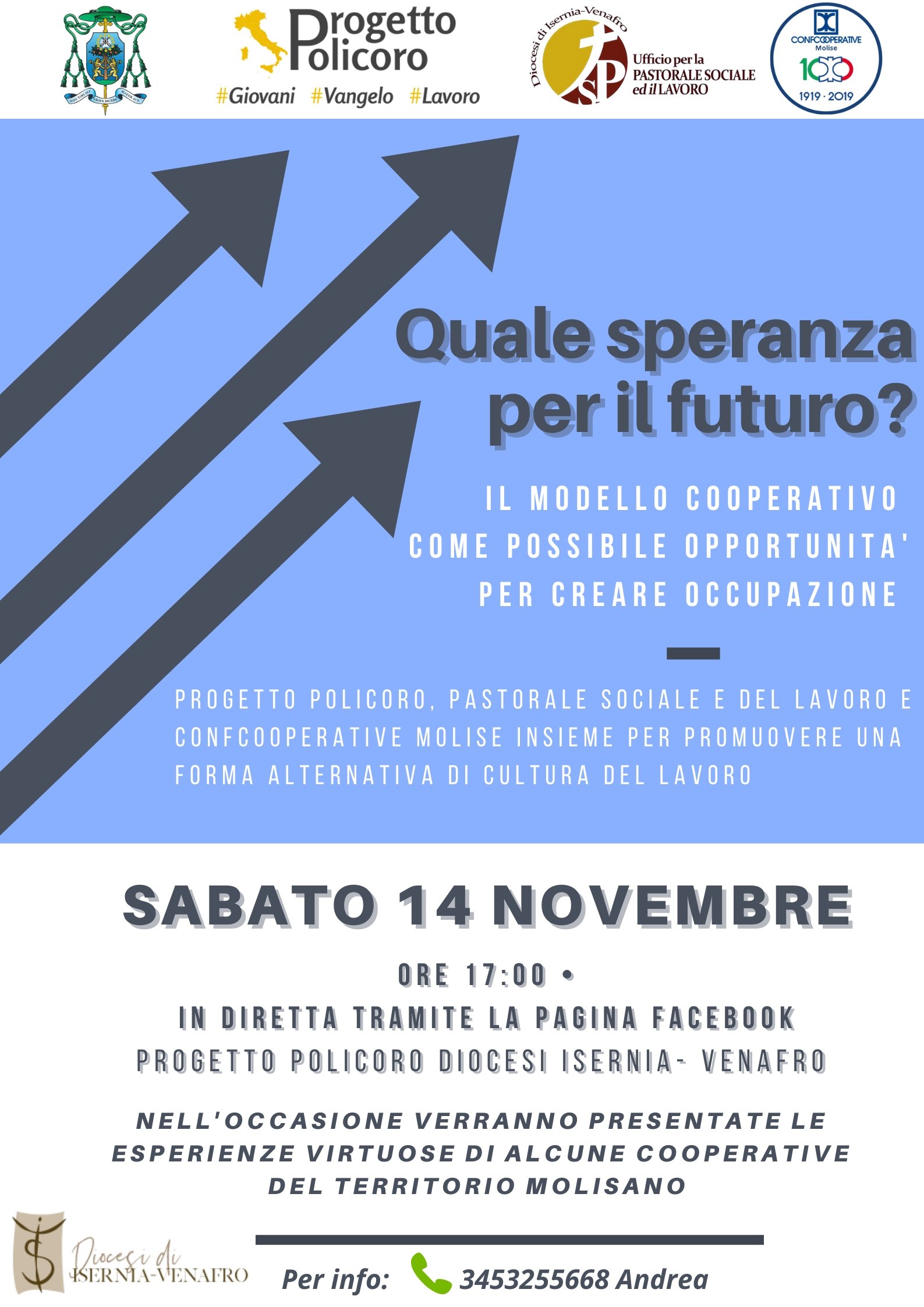 Siamo lieti di annunciarvi questo interessante incontro organizzato dal Progetto Policoro Diocesi Isernia-Venafro, Pastorale Sociale, Lavoro e Carceraria della Diocesi di Isernia-Venafro e Confcooperative Molise