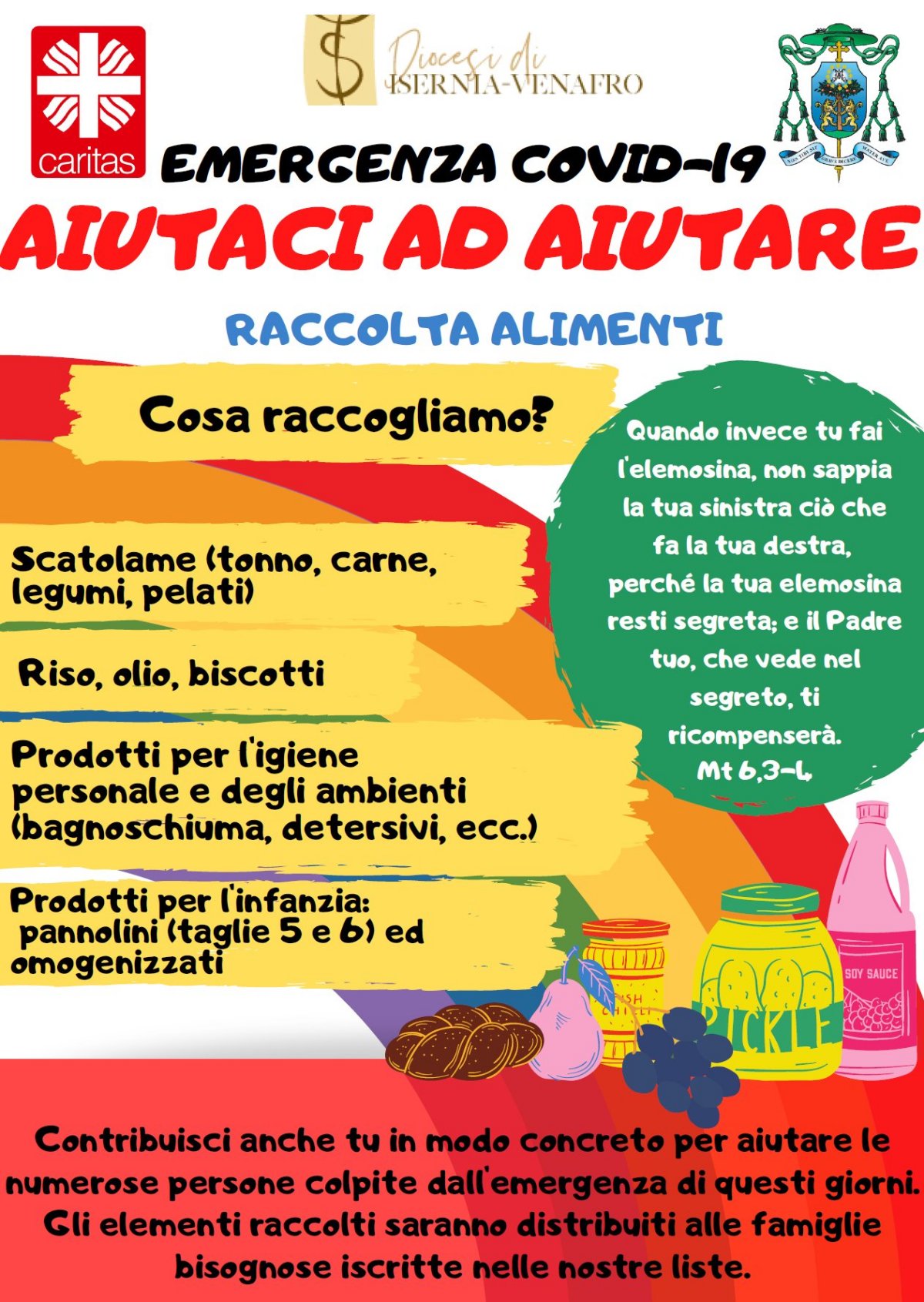 Ha preso il via in questi giorni la raccolta alimentare “Aiutaci ad aiutare” promossa dalla Caritas Diocesana di Isernia – Venafro. Con il vertiginoso aumentare delle richieste delle famiglie in difficoltà, sono stati predisposti dei punti di raccolta nei supermercati aderenti. In un cartone o in un carrello dedicato, chi vorrà potrà lasciare i prodotti da destinare alla Caritas. Gli stessi saranno raccolti periodicamente dai volontari e saranno immediatamente distribuiti ai numerosi richiedenti. In questo momento di smarrimento e nuove povertà, ognuno di noi può lenire la sofferenza di molti attraverso un piccolo gesto di solidarietà.