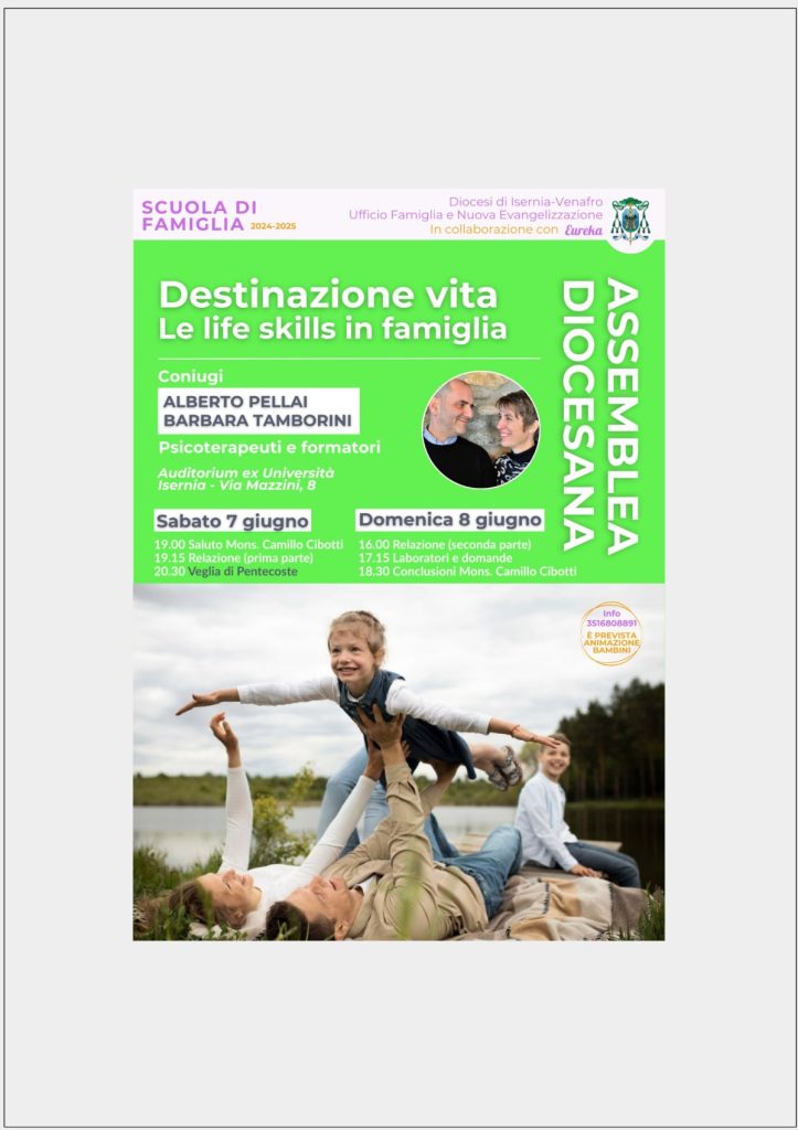 • Sabato 7 e Domenica 8 giugno 2025 – Destinazione vita – Le life skills in famiglia – Auditorium (ex Università) Isernia –