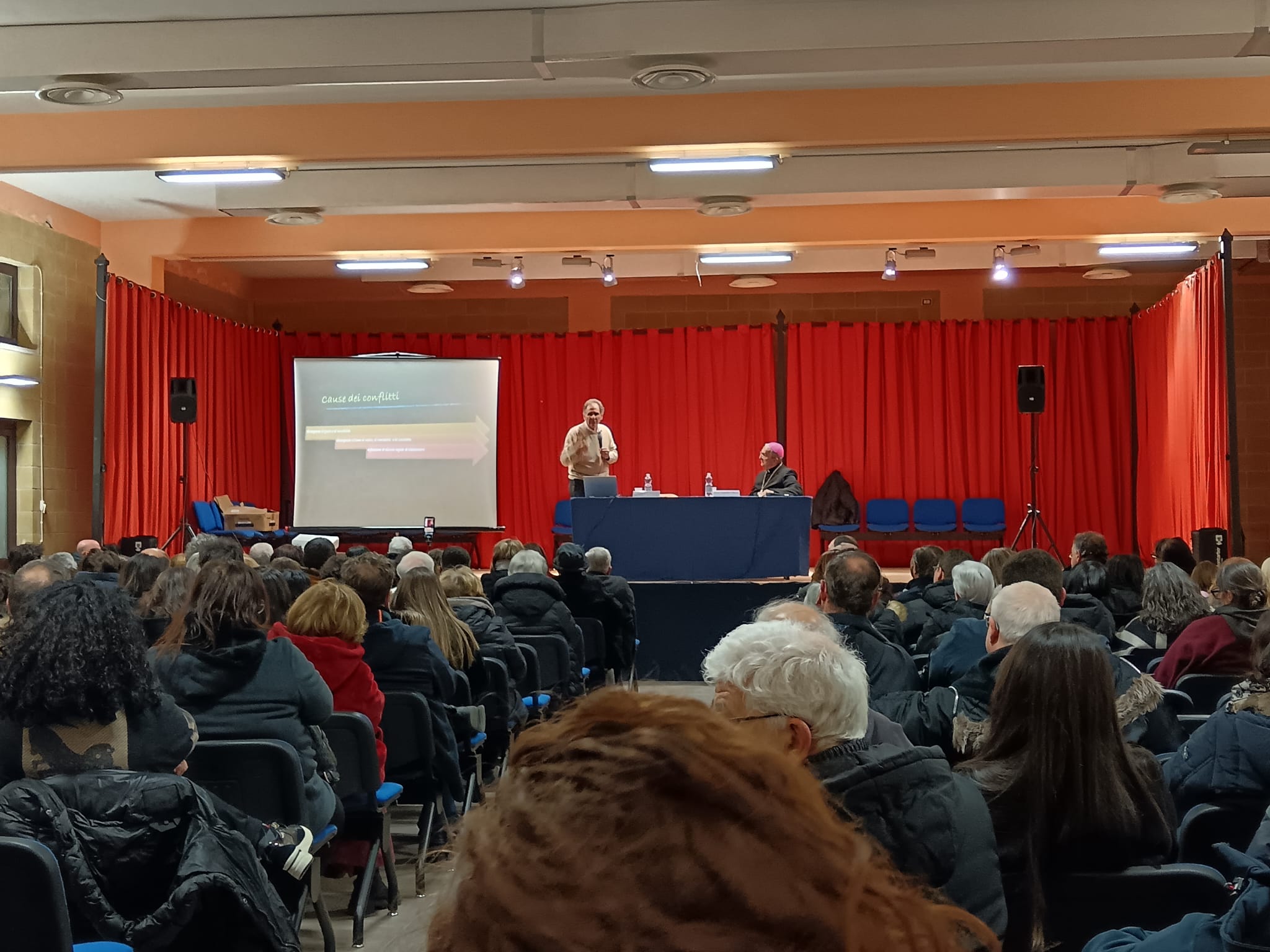 L’incontro si è concluso con il ringraziamento e la benedizione del Vescovo che, prima di salutare i convenuti, riprendendo un’idea proposta dal Mastromarino, ha condiviso loro una sua personale esperienza di conflitto (al tempo in cui era parroco), risoltosi dopo diversi mesi e grazie anche alla mediazione di una persona amica.