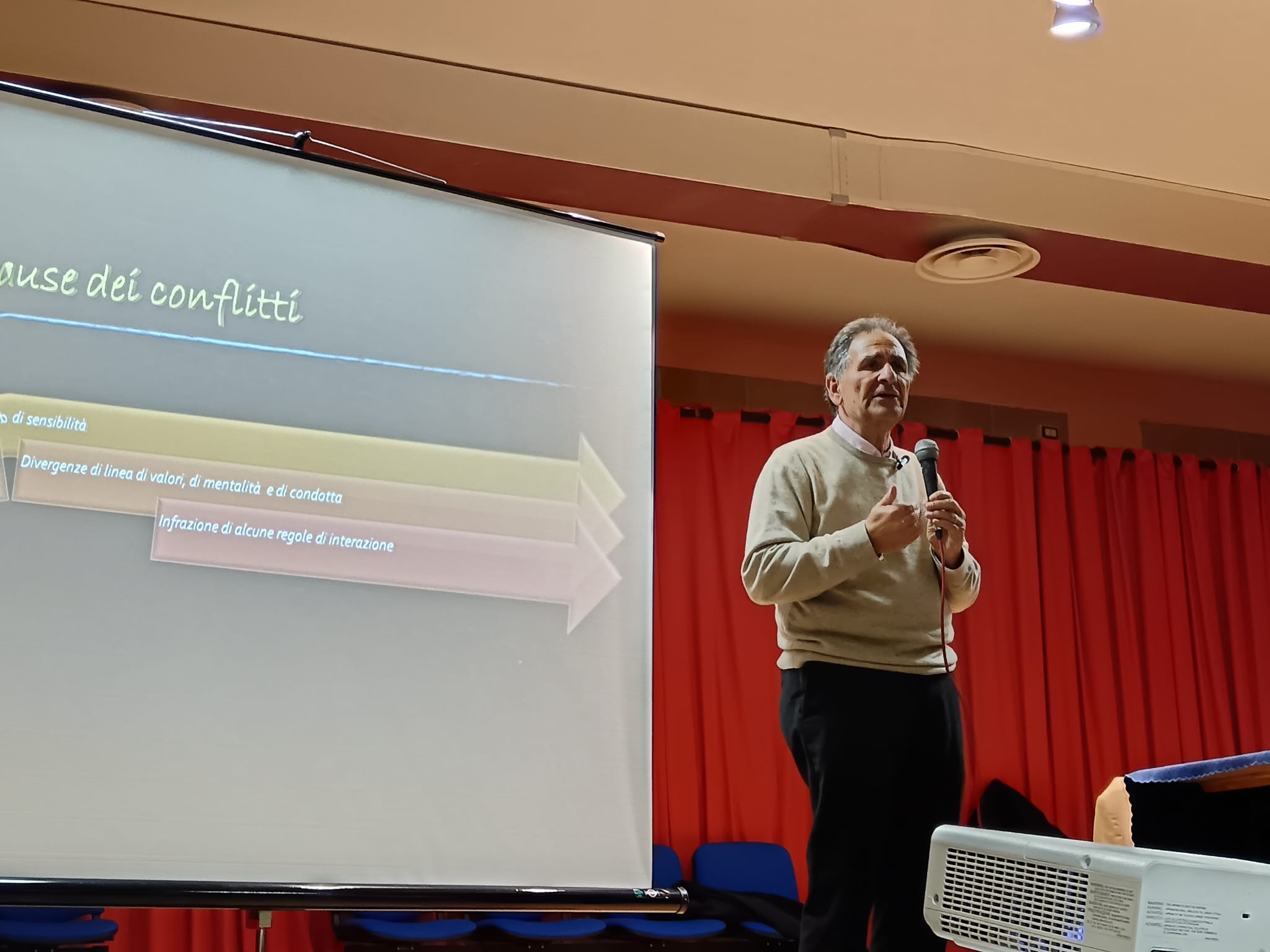Dopo le parole di accoglienza del Vescovo Camillo è iniziata la presentazione del tema, corredata da immagini e tanto scambio con i sacerdoti e le famiglie presenti. Il professore ha analizzato il tema del conflitto con un linguaggio chiaro ed esperto, con esempi concreti e quotidiani, con suggerimenti alla portata di tutti. Il taglio dell’intervento è stato prettamente “familiare” ma i suoi contenuti sono spendibili in ogni tipologia di conflitto e dunque anche nell’amicizia, nel lavoro, in parrocchia, ecc. Dopo aver presentato le varie tipologie e cause del conflitto ha centrato l’attenzione sulla loro risoluzione mediante la “negoziazione”, riassumibile in questi 6 passaggi: