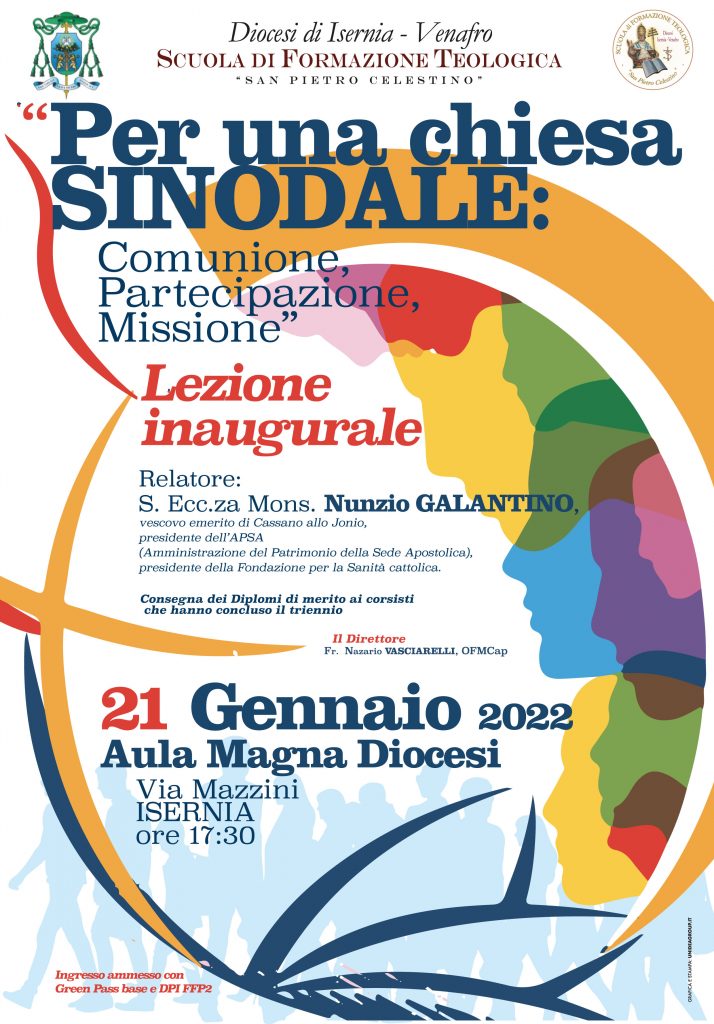 La Chiesa che è in Isernia-Venafro, il suo pastore il vescovo Camillo Cibotti, in particolare la Scuola di Formazione Teologica “San Pietro Celestino” che ha sede nel capoluogo pentro, con l’evento che propone vuole fare proprie le indicazioni di Papa Francesco che ha convocato per tutta la Chiesa Universale un Sinodo dal titolo «Per una Chiesa sinodale: comunione, partecipazione e missione». Il Sinodo si è aperto solennemente nello scorso mese di ottobre a Roma e il 17 dello stesso mese in ogni Chiesa particolare.