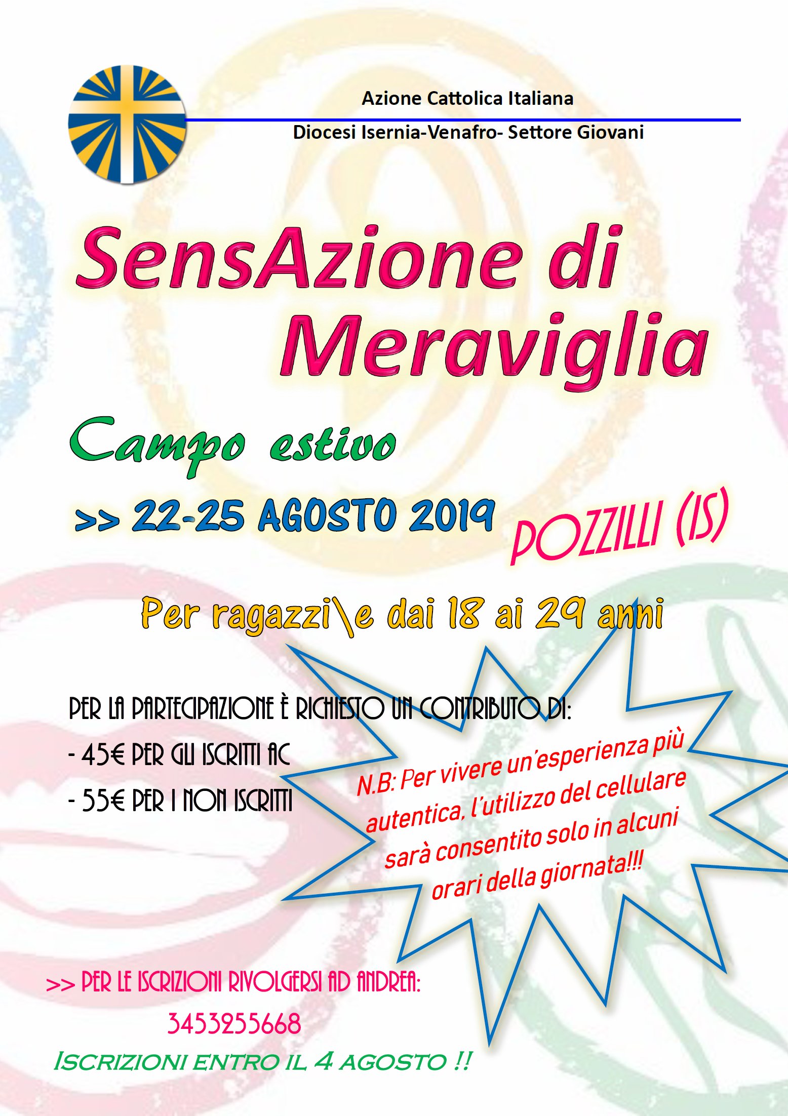 L’Azione Cattolica della Diocesi di Isernia-Venafro organizza dal 22 al 25 agosto 2019 un Campo Estivo a Pozzilli (IS):
