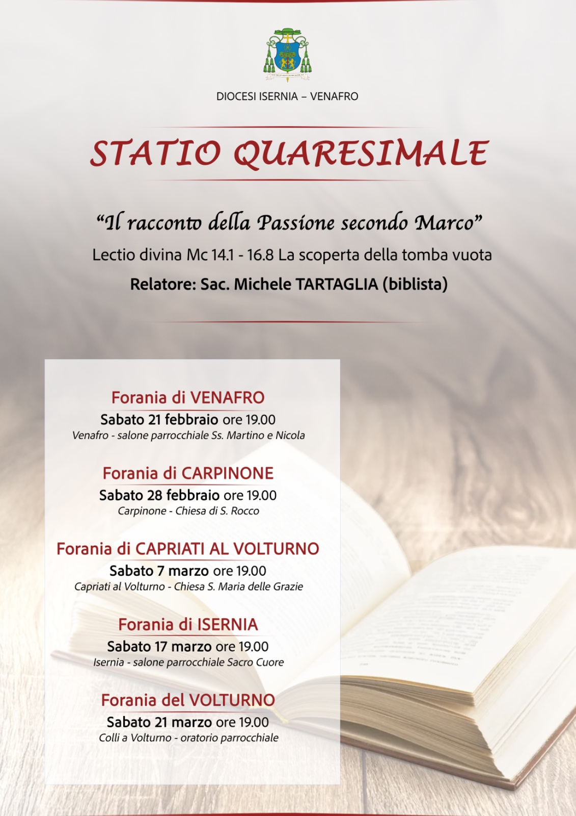Sabato 21 febbraio 2026 ore 19.00 – Forania di VENAFRO – salone parrocchiale Ss. Martino e Nicola –