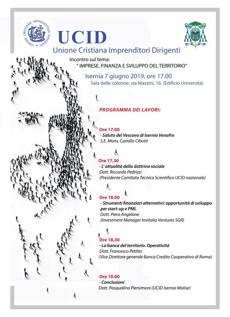 Archivio news in primo piano UCID – Unione Cristiana Imprenditori Dirigenti Imprese, finanza e sviluppo del territorio UCID – Unione Cristiana Imprenditori Dirigenti Incontro sul tema “Imprese, finanza e sviluppo del territorio” Isernia 7 giugno 2019 – ore 17.00 Sala delle Colonne, Via Mazzini 16 (Edificio Università). FacebookTwitterLinkedin