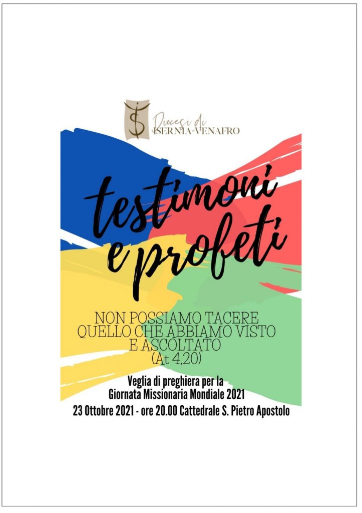 In occasione della Giornata Missionaria Mondiale, che si terrà domenica 24 Ottobre, il Centro Missionario diocesano ha organizzato una veglia di preghiera da titolo “Testimoni e Profeti”: annunciare il Regno di Dio, che verrà e che è già germogliato in mezzo a noi”